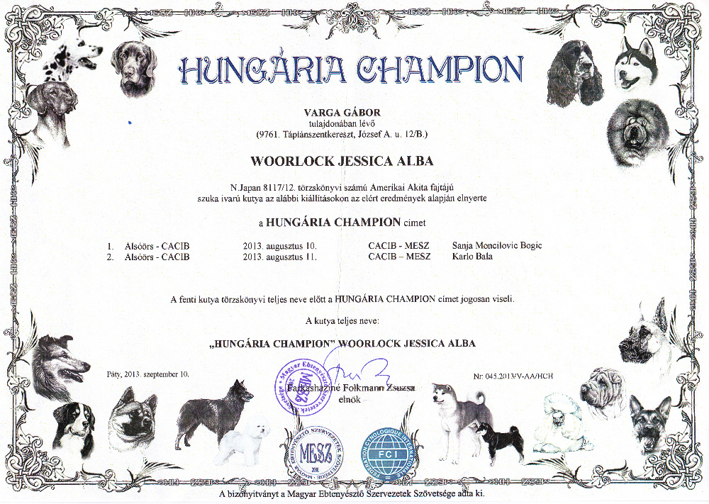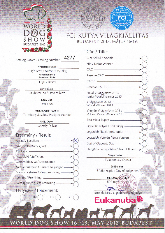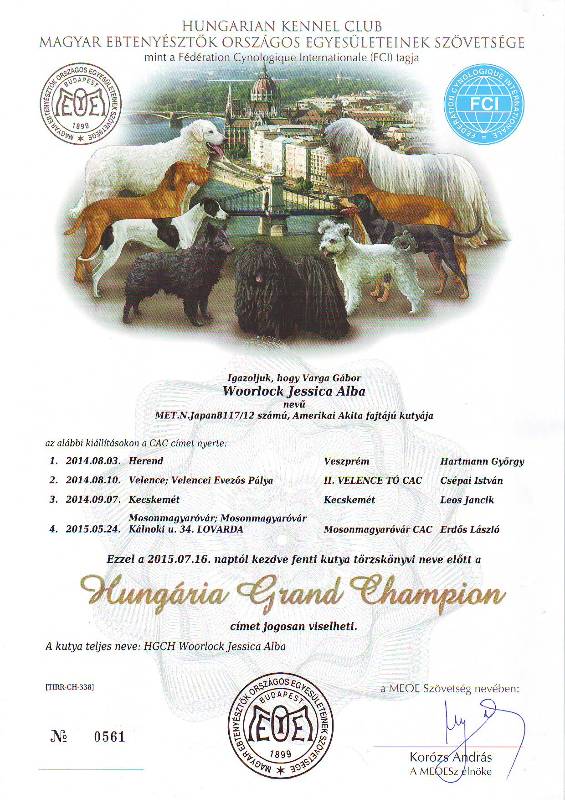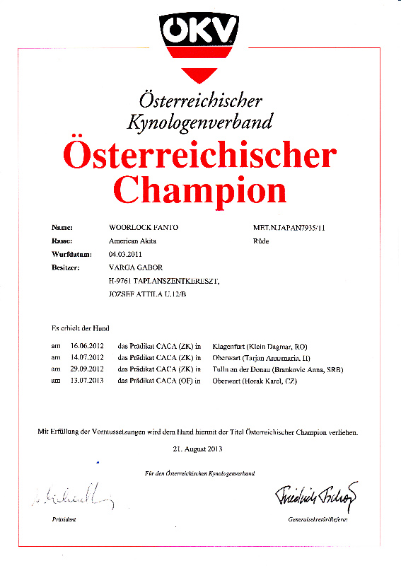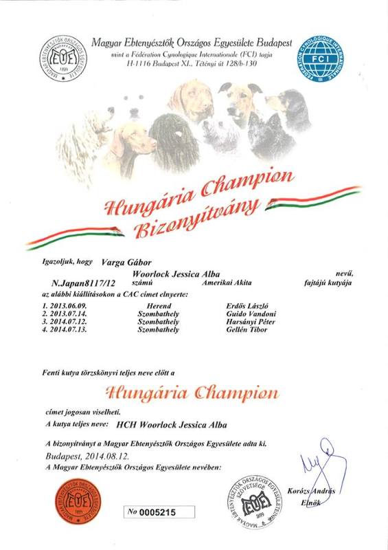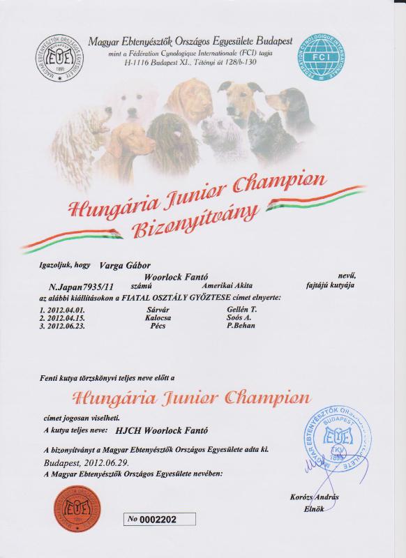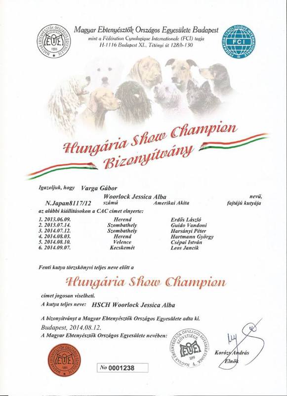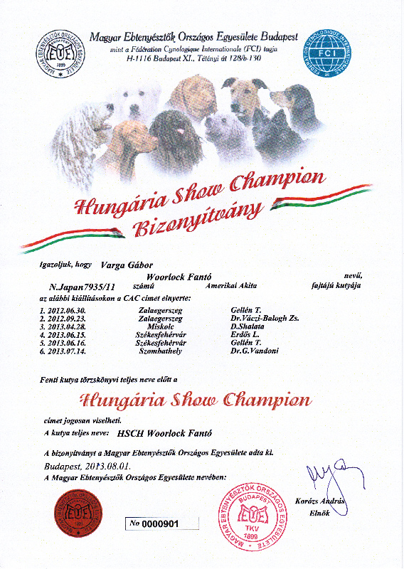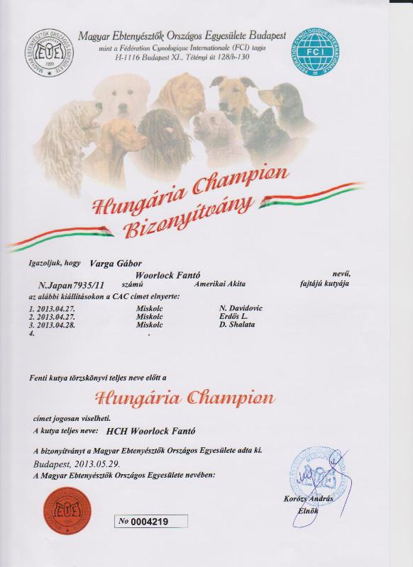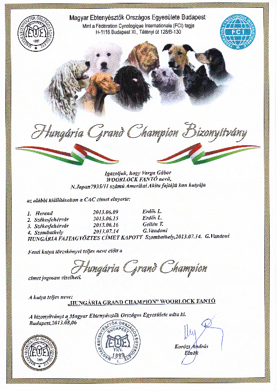 HJCH, CH-HR, HCH, ÖCH, HSCH, HGCH, INT.CH Woorlock Fantó