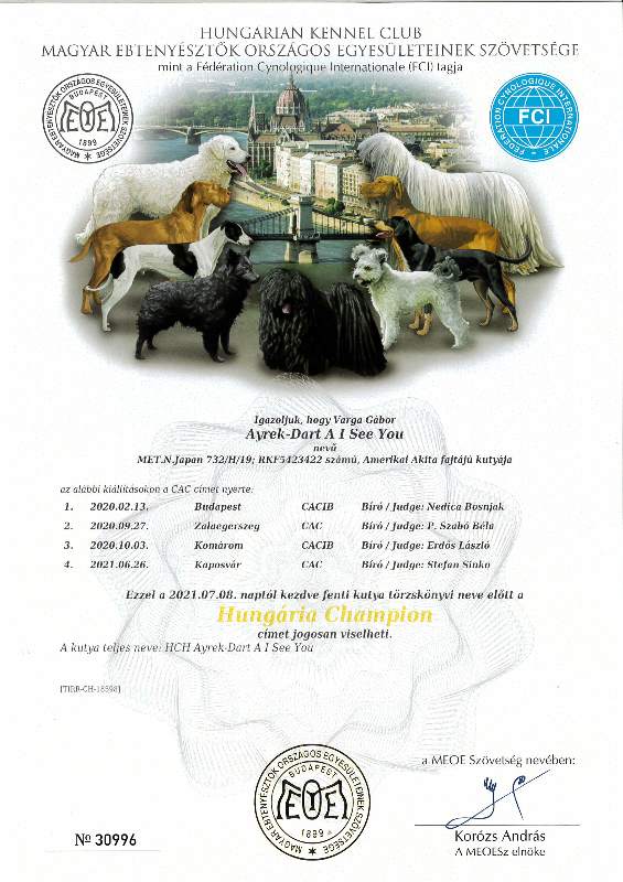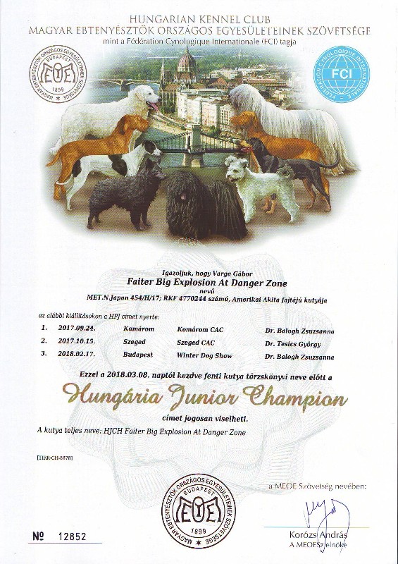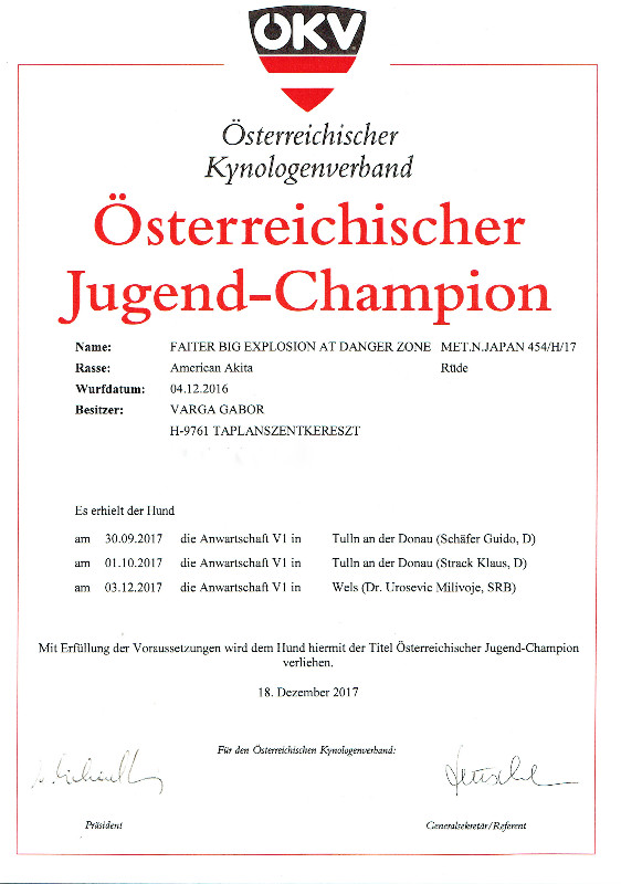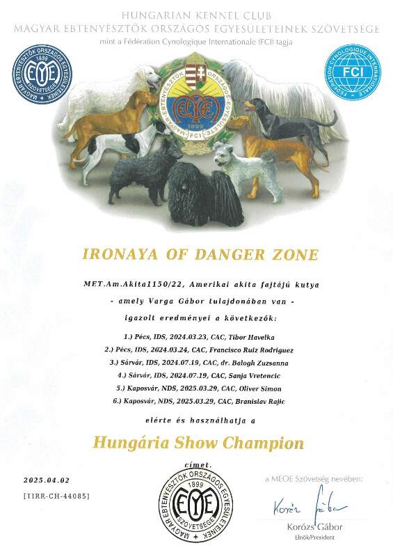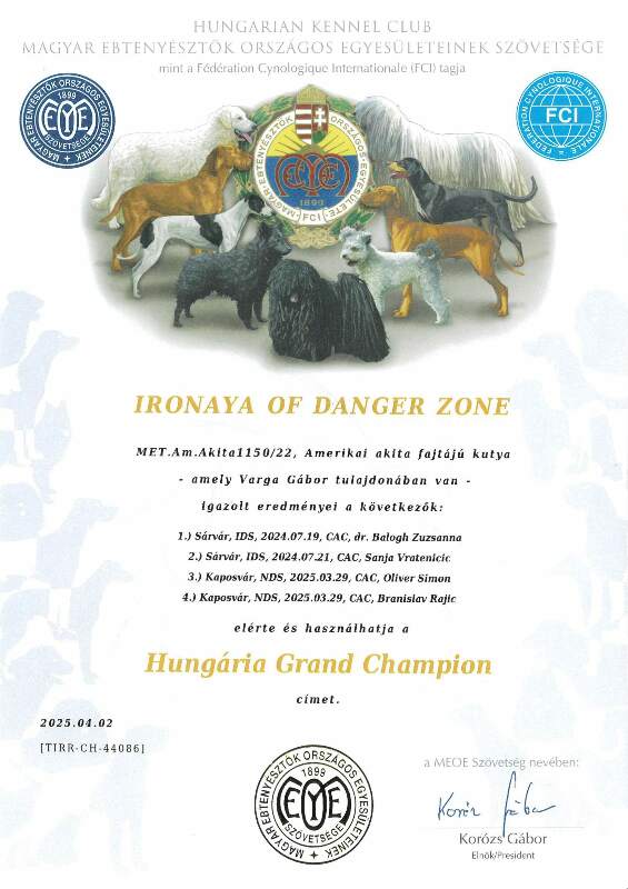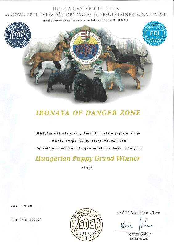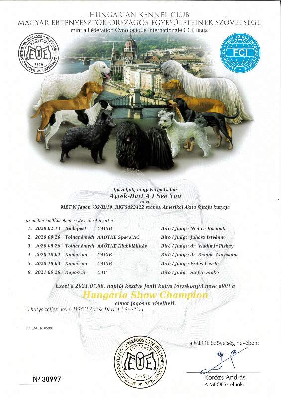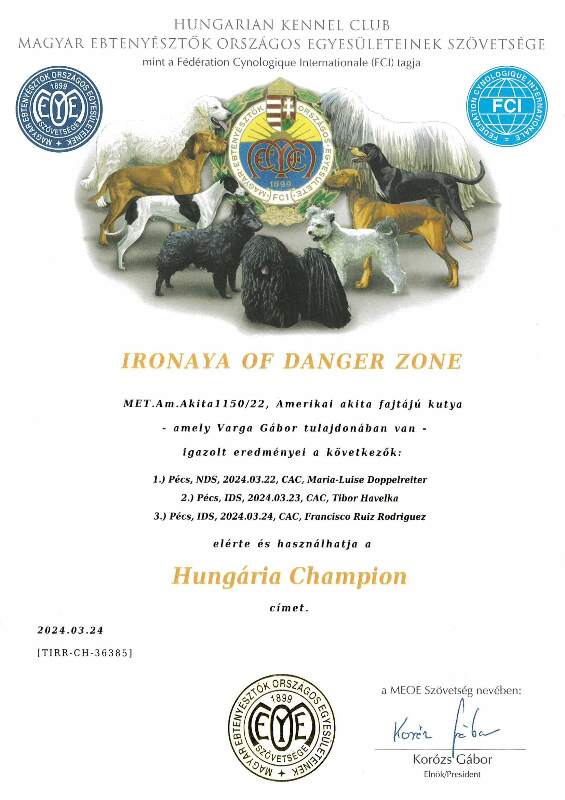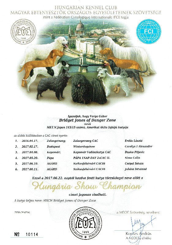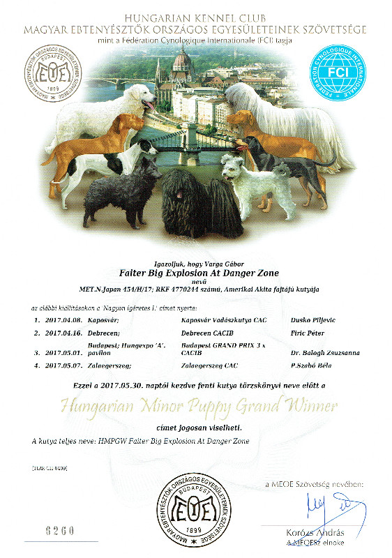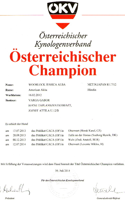 HJCH, CH-HR, HCH, ÖCH, HSCH, HGCH, INT.CH Woorlock Fantó