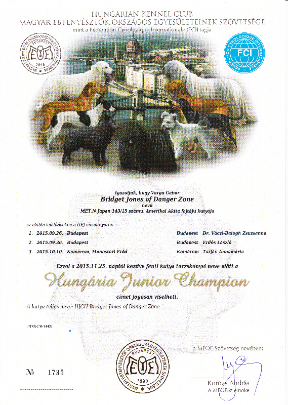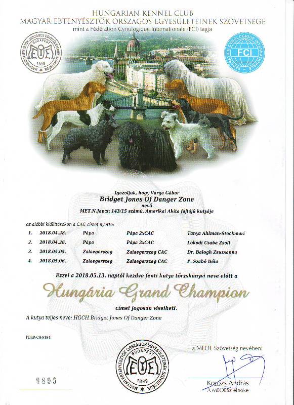 HJCH, CH-HR, HCH, HSCH, HGCH, INT.CH Bridget Jones of Danger Zone