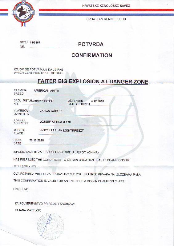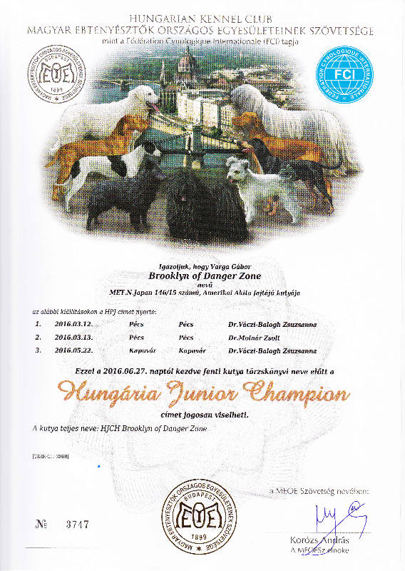 HJCH, HCH, INT.CH. Brooklyn of Danger Zone