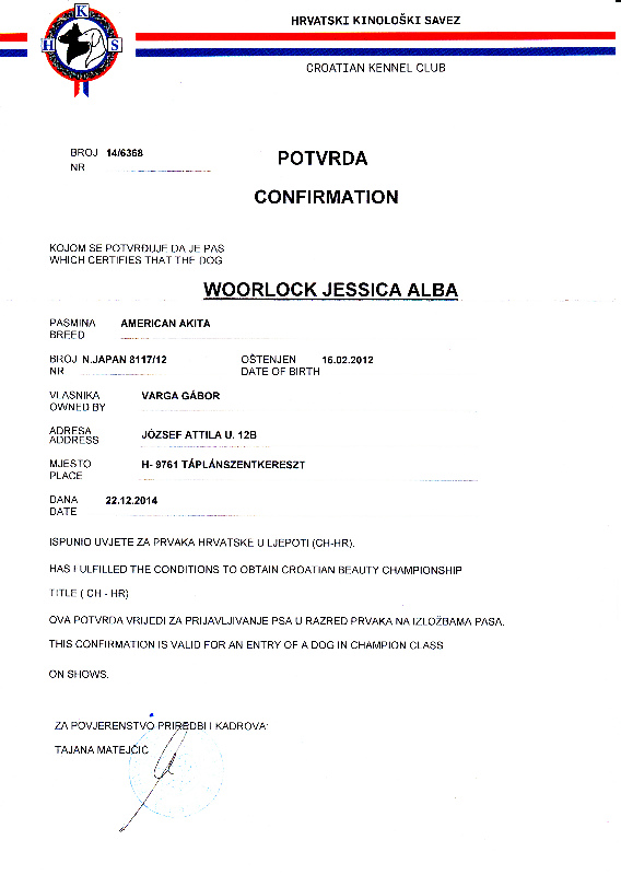 CHM-HR, HJCH, 2 x HCH, HSCH, ÖCH, CH-HR, HGCH, INT.CH Woorlock Jessica Alba