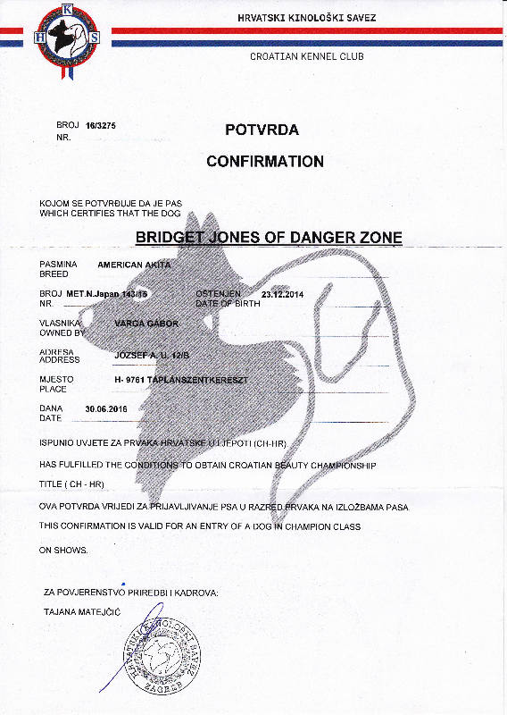 CACIB OBERWART – 16.07.2016 HJCH Brooklyn of Danger Zone Results: Exc. 1., CACA in Open Class and Res. CACIB Judge: Mr. Deutscher Erwin (A) NIGHT CAC SZOMBATHELY – 16.07.2016 HJCH Brooklyn of Danger Zone Results: Exc. 1., CAC in Open Class and BOS !!!!!!!!!! Judge: Mrs. Zsuzsanna dr. Váczi-Balogh (H) CACIB SZOMBATHELY – 17.07.2016 HJCH Brooklyn of Danger Zone Results: Exc. 1., CAC in Open Class, CACIB and BOS !!!!!!!!!! Judge: Mr. Péter Harsányi (H) Int.CH Woorlock Jessica Alba Results: Exc. 1., Ch. CAC in Champion Class and Res CACIB Judge: Mr. Péter Harsányi (H) ♥️♥️ BREEDING PAAR III. place ♥️♥️