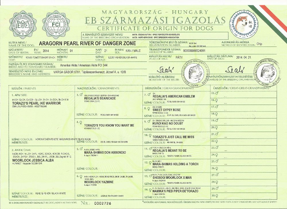 Sire / Apa: BIS. INT.CH., MULTI GRCH, MULTI CH, MULTI JCH TORAZO’S PEARL IKE WARRIOR