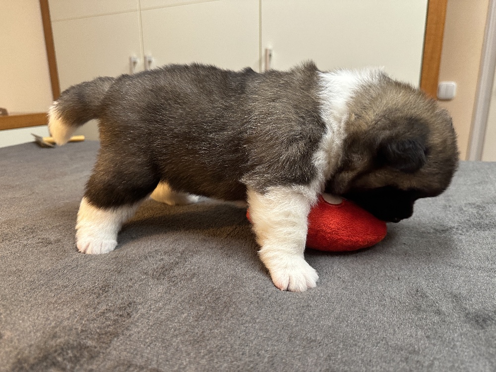 Sire / Apa: CH AT, CH HU, C.I.B-J, JCH LT, J. CW 2025 SK, Special JW 2025 SK, Polish Top Dog 2024, JCH PL, Poznan JW 2024, JCH SK, Nitradog JW 2024, Nitradog Super W 2024, Puppy CH PL Malfuria (FCI) NOW YOU’RE MY ROCK NYXXAR a.k.a BOBER