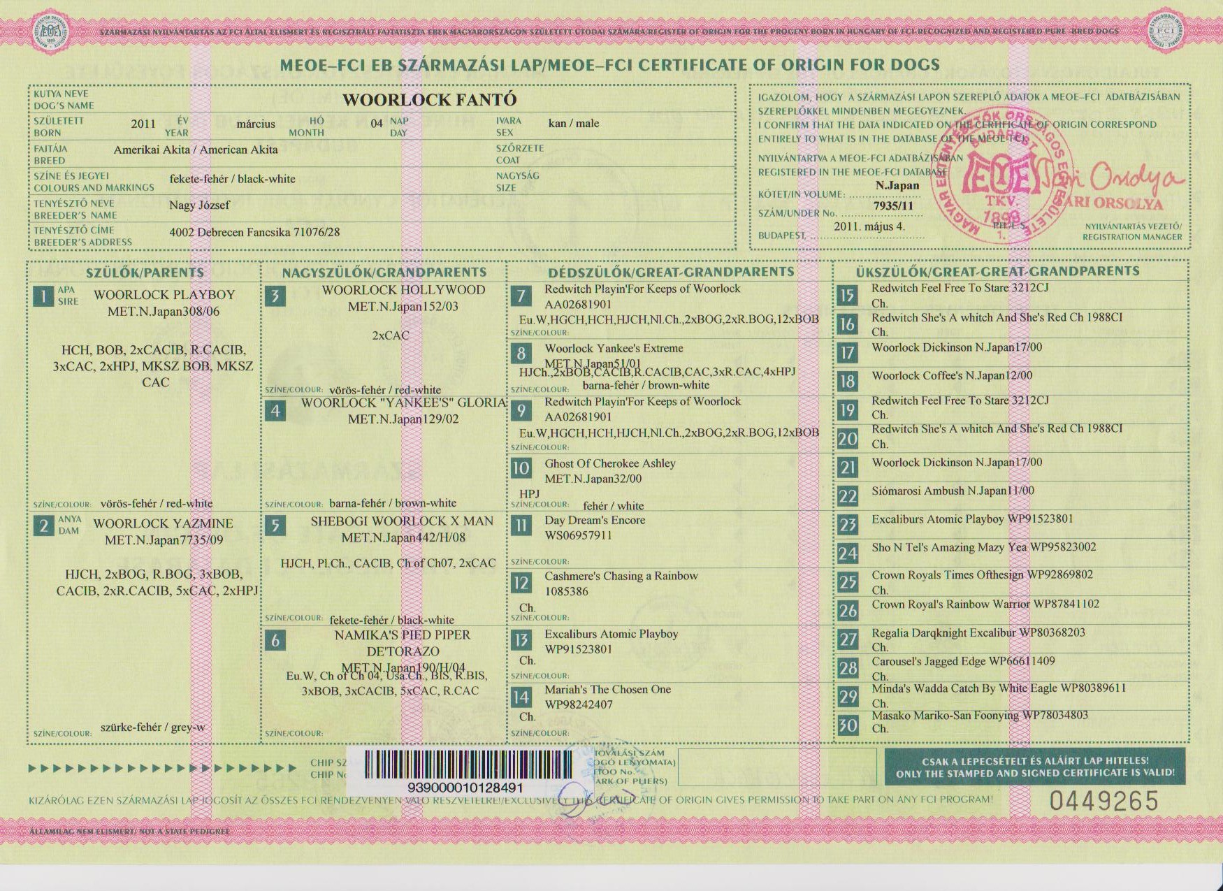 Name / Név: HJCH, CH-HR, HCH, ÖCH, HSCH, HGRCH, INT.CH Woorlock Fantó